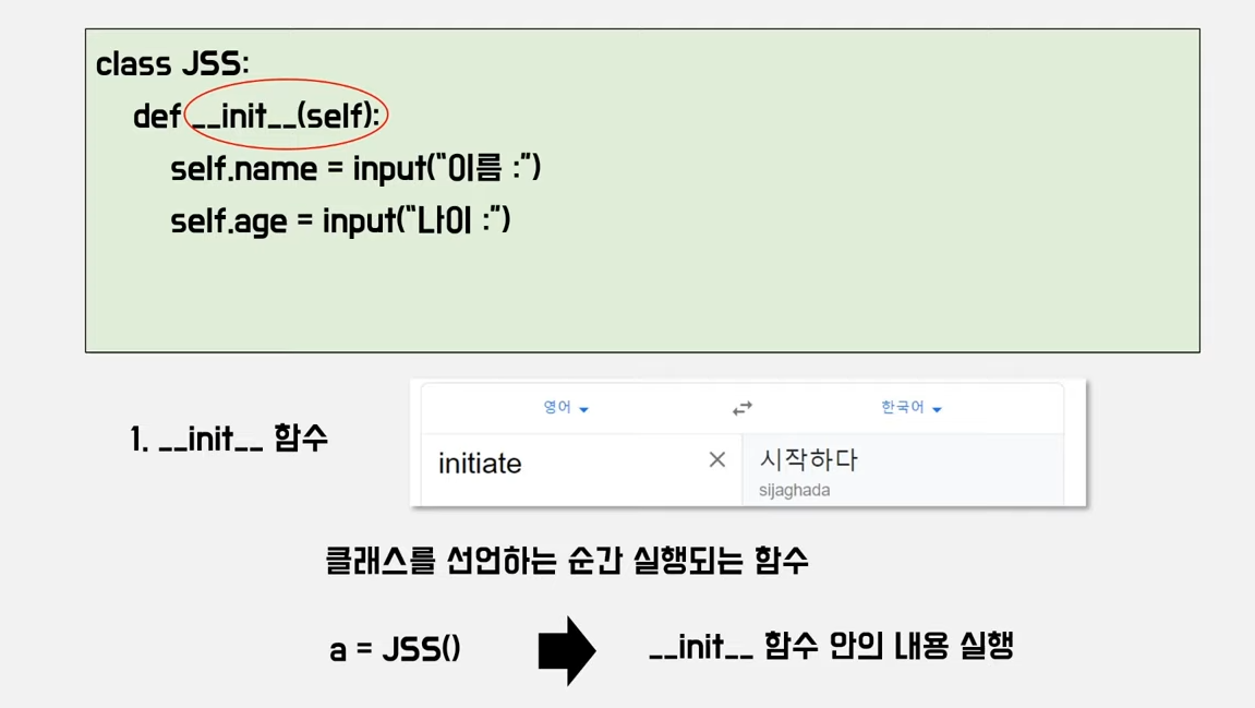 1. JSS 라는 클래스를 실행하게 되면, __init__이라는 함수가 실행된다.